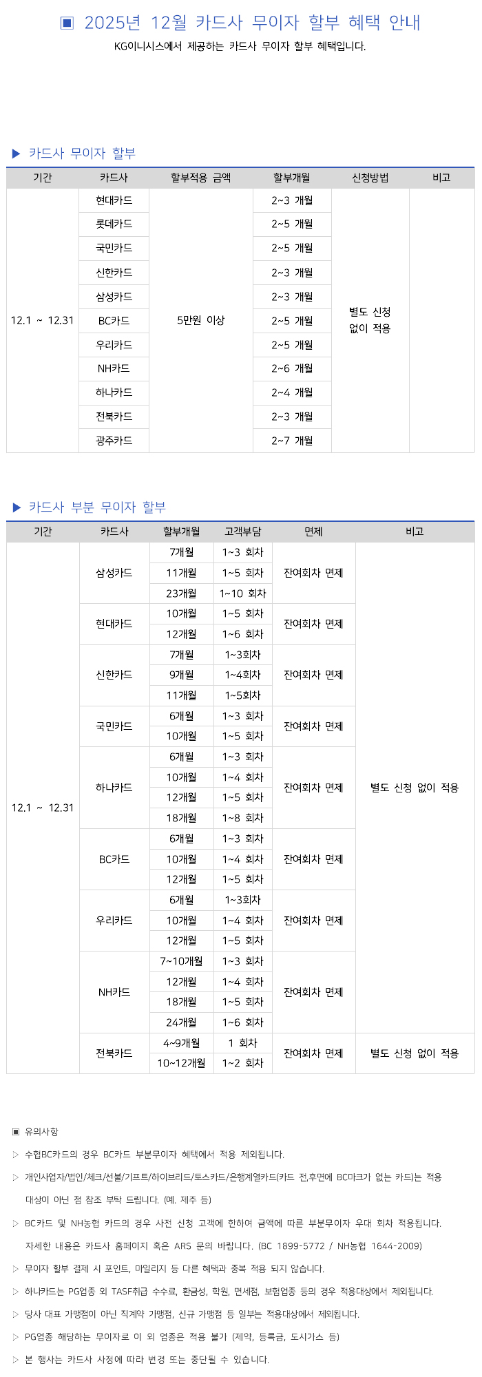 | 2025년 12월 카드사별 무이자 할부안내 |