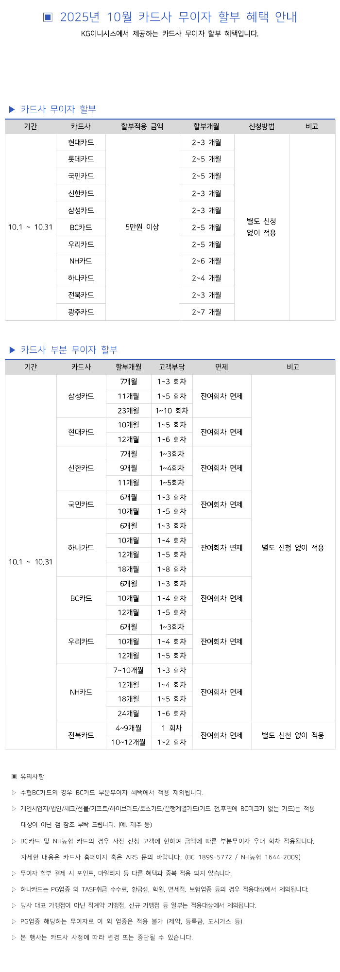 [공지] 2025년 10월 카드사별 무이자 할부안내 |