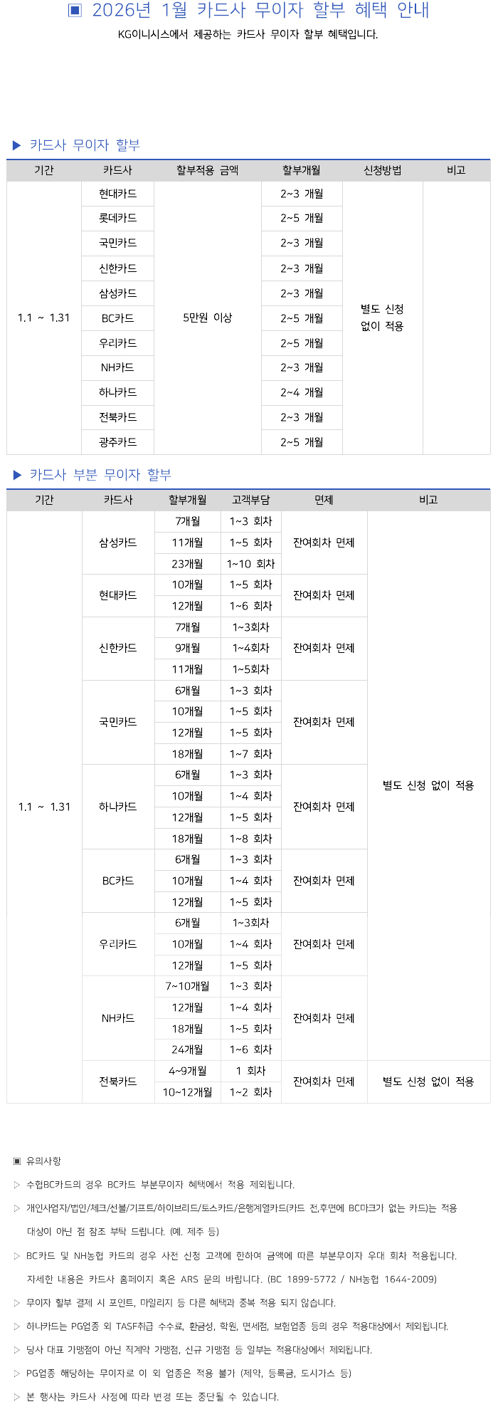 309 [공지] 2026년 1월 카드사별 무이자 할부안내 관리자 26-01-09