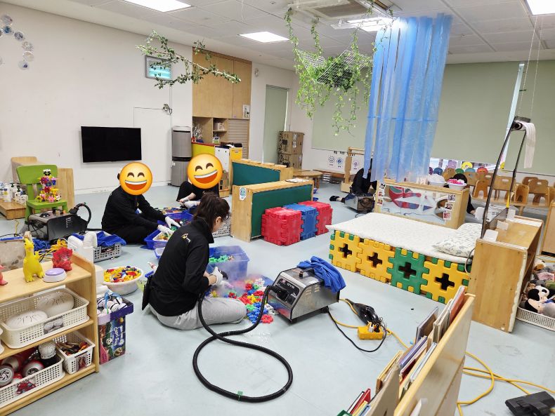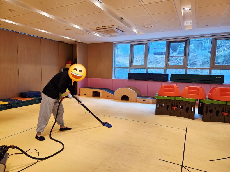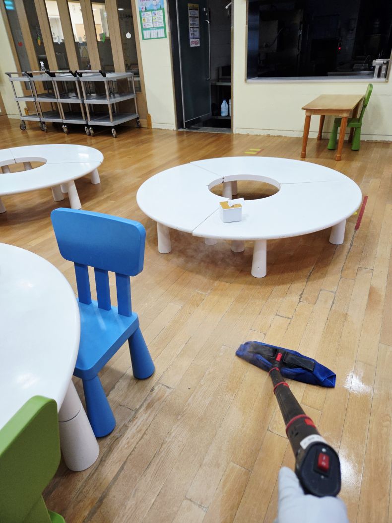 책걸상과 교구장, 교구재를 스팀세척살균소독 하였습니다.