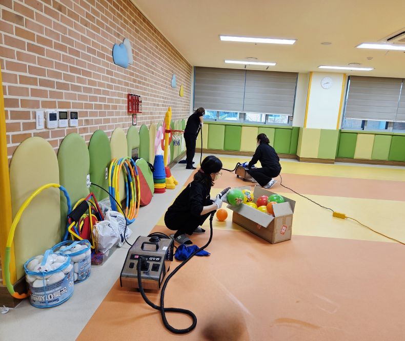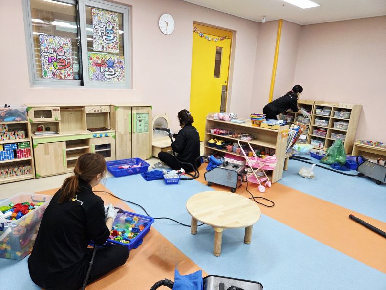 책걸상과 교구장, 교구재를 스팀세척살균소독 하였습니다.