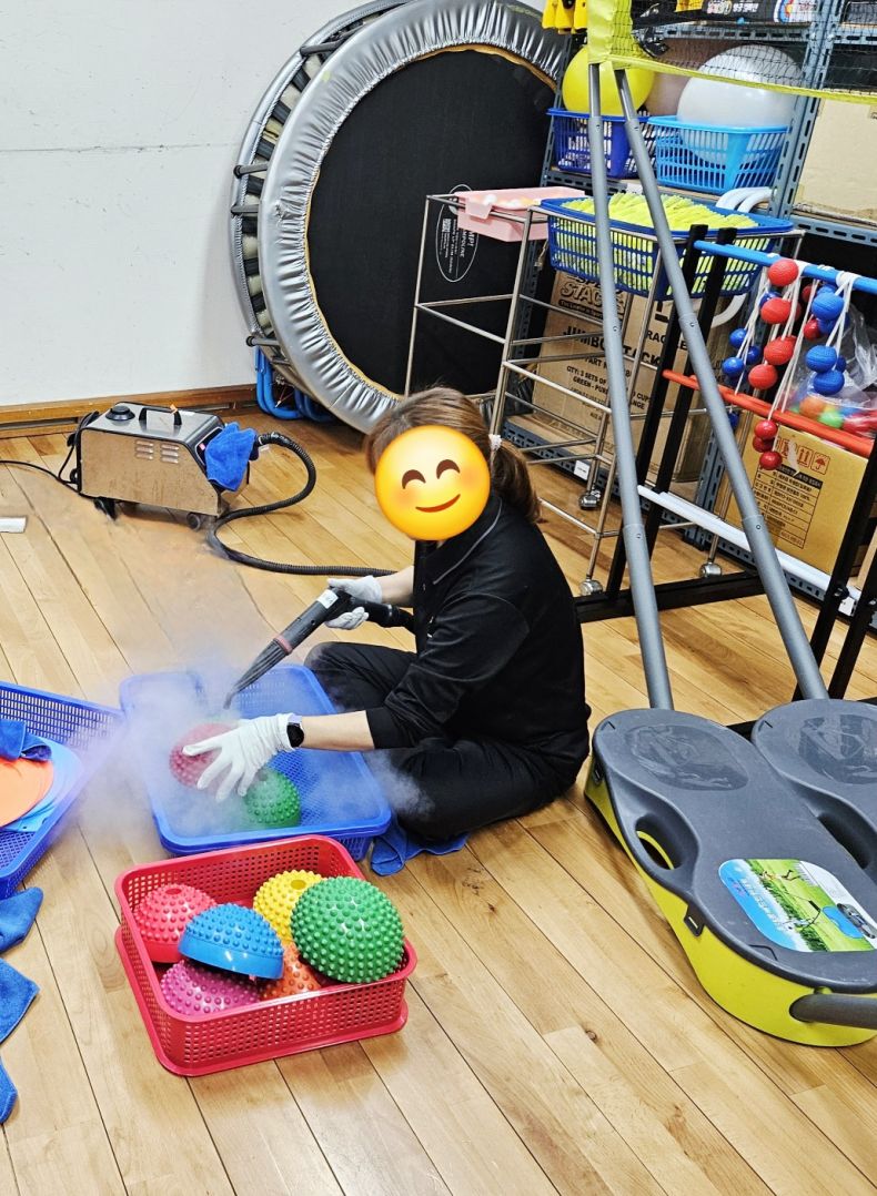 프로그램실과 체육실 교구등을 스팀세척살균소독 하였습니다.