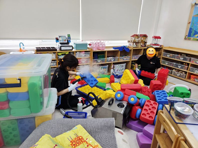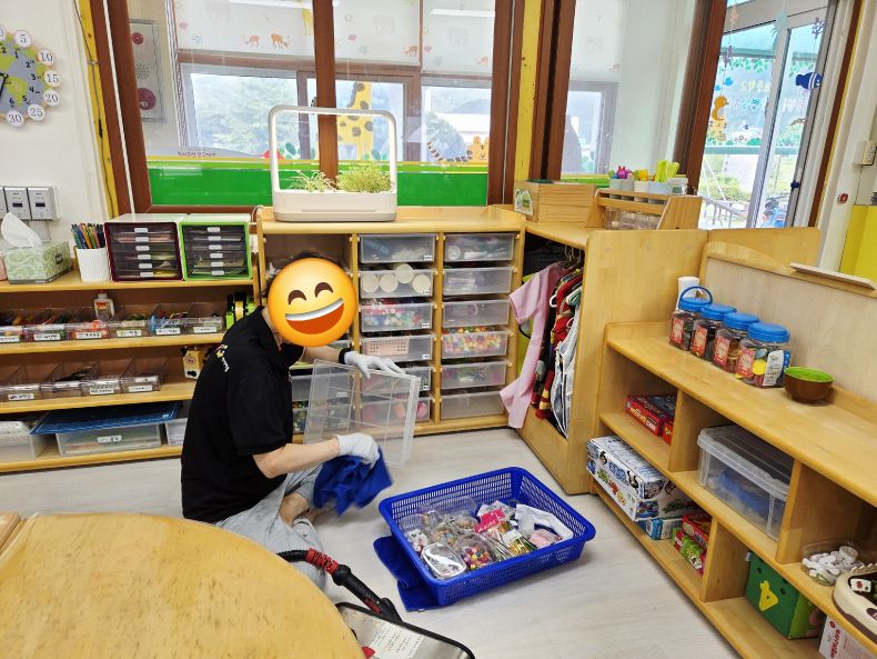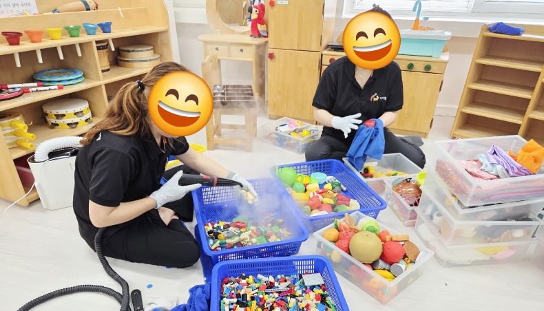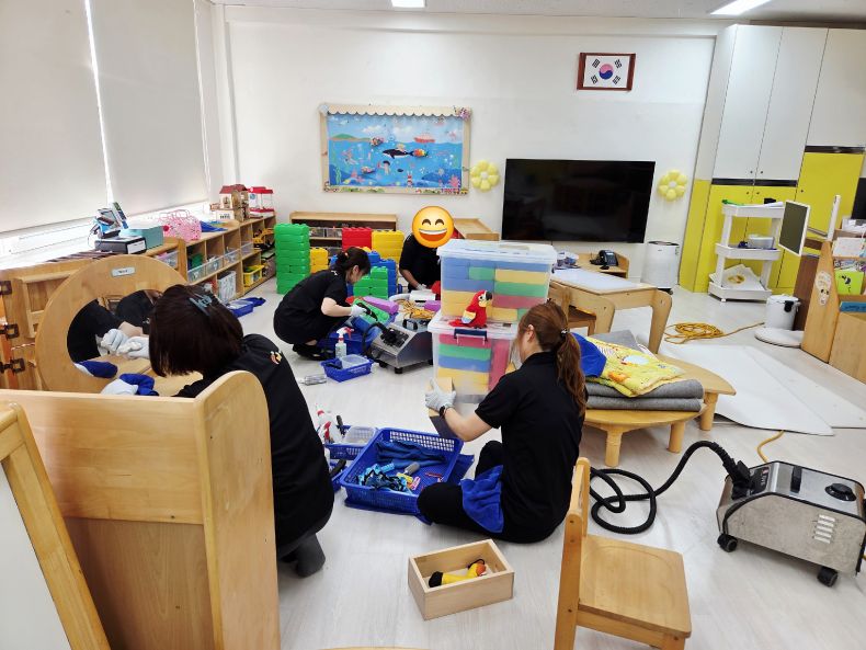 책걸상과 교구장을 스팀세척살균소독 하였습니다.