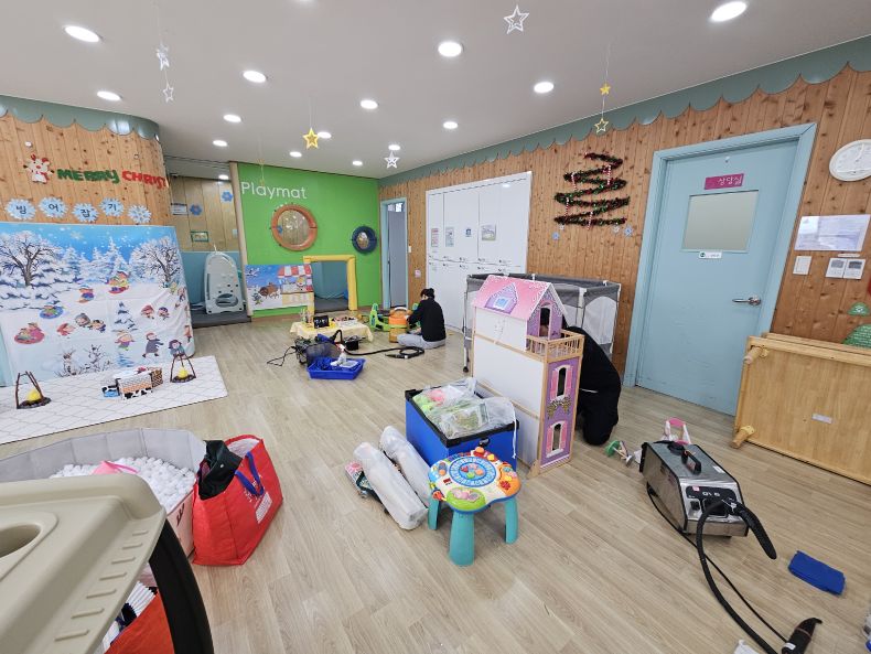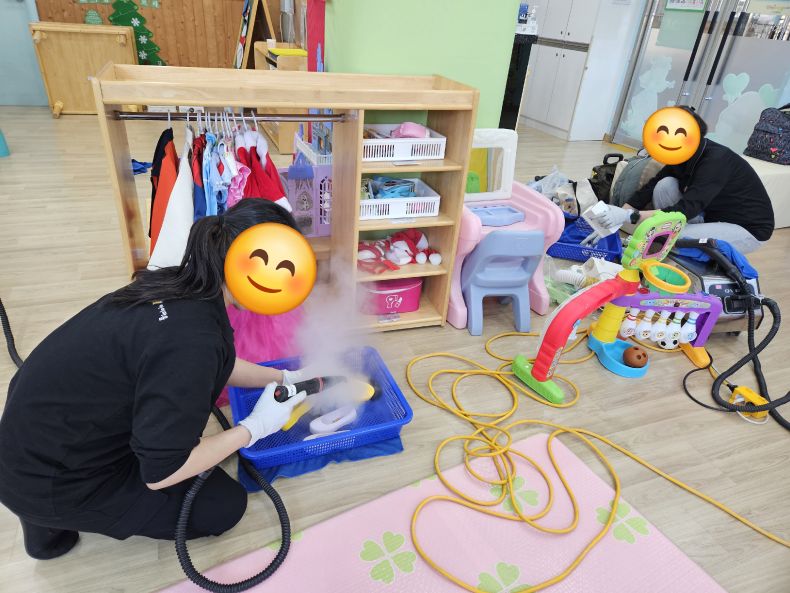 장난감을 스팀세척살균소독 하였습니다.