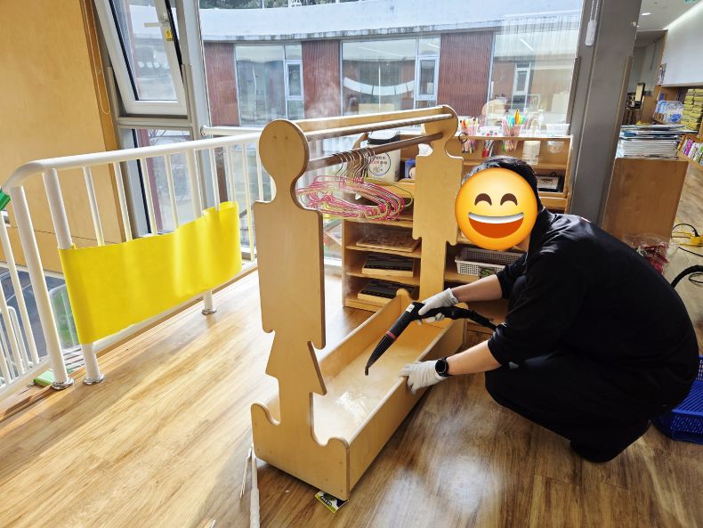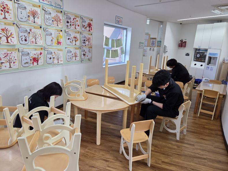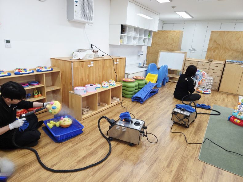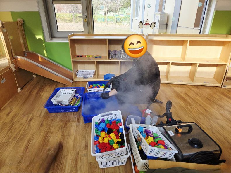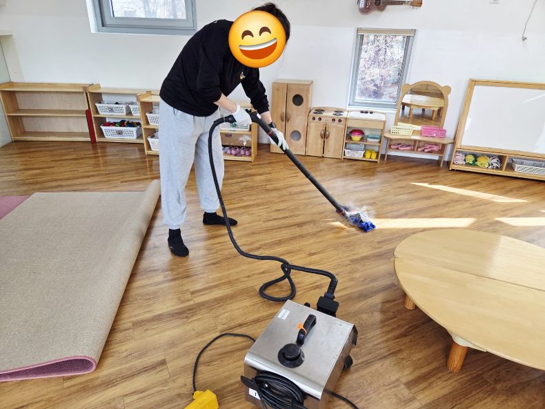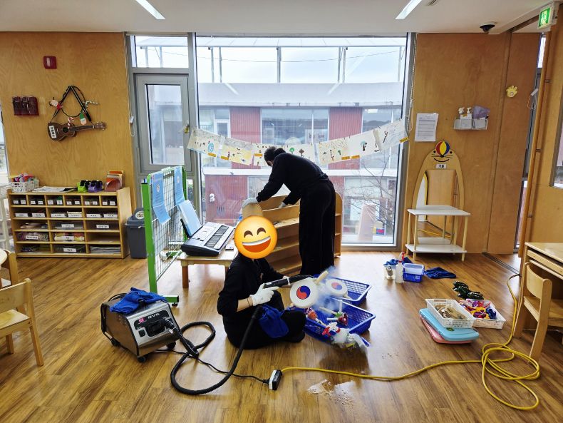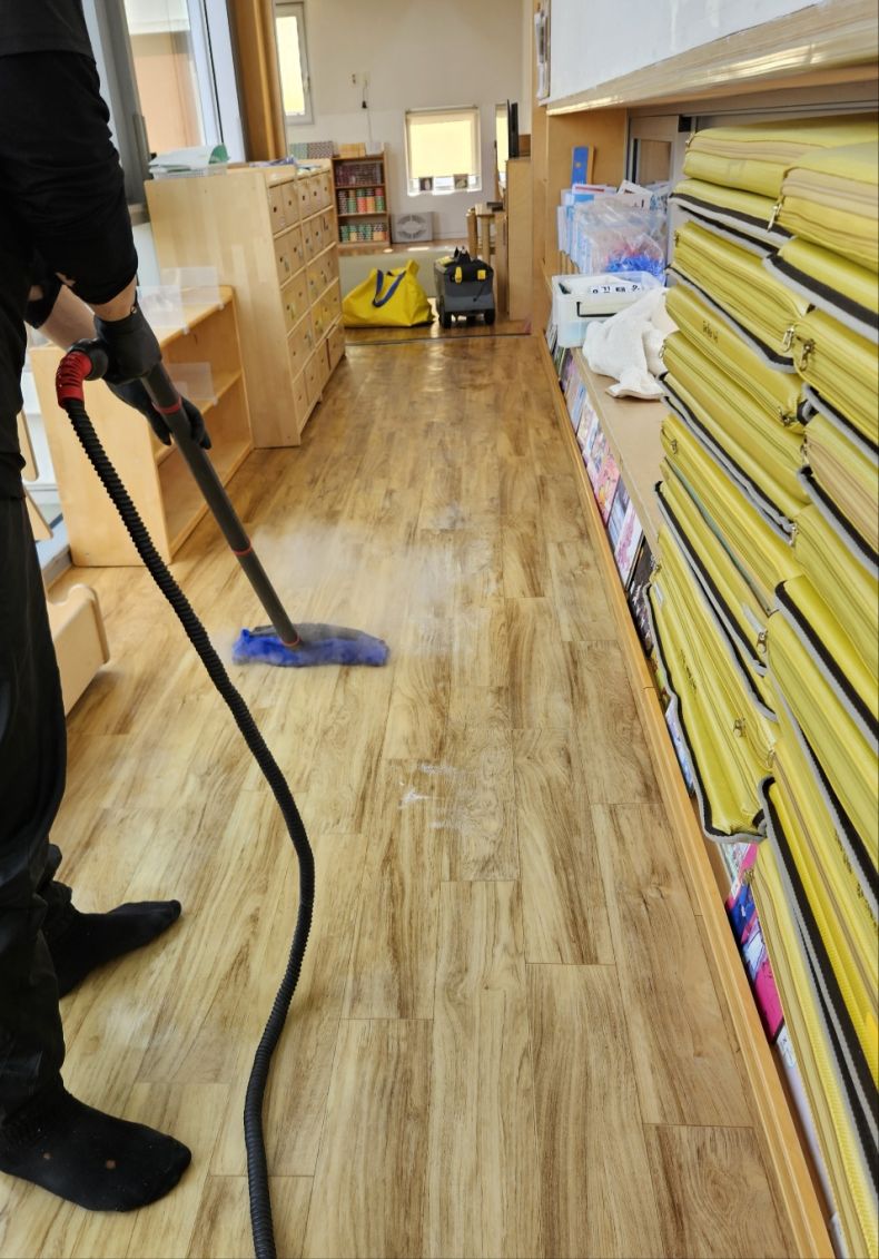 책걸상과 교구장, 교구재를 스팀세척살균소독 하였습니다.