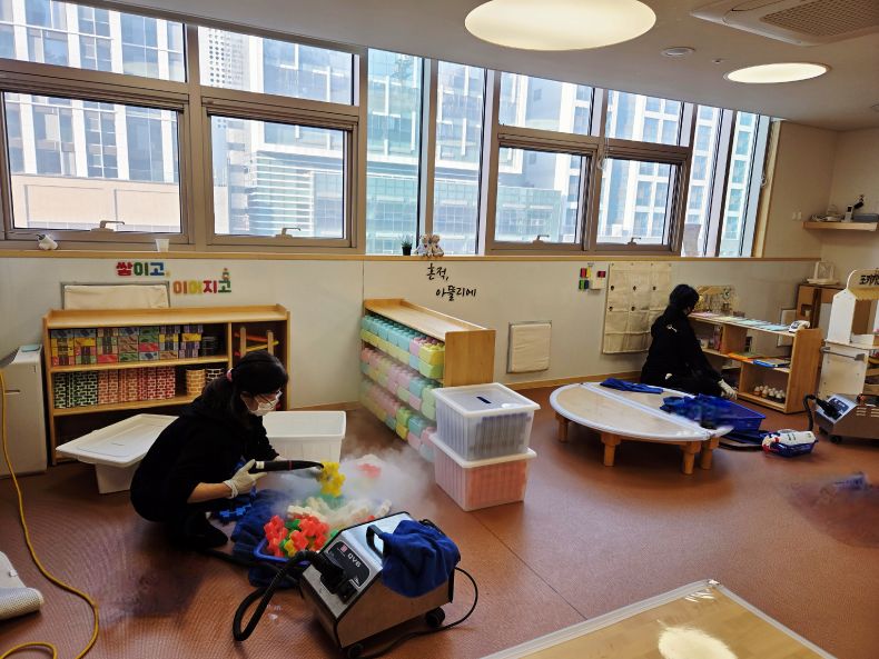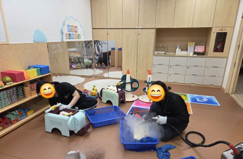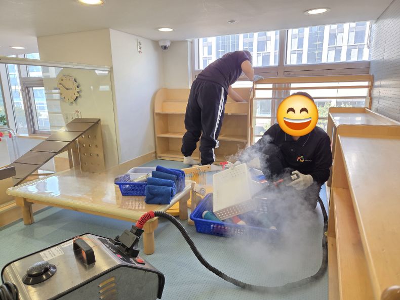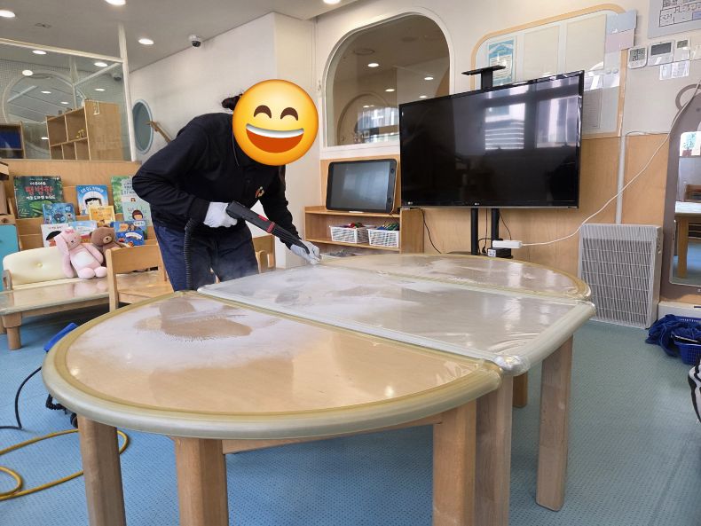 책걸상과 교구장, 교구재를 스팀세척살균소독 하였습니다.