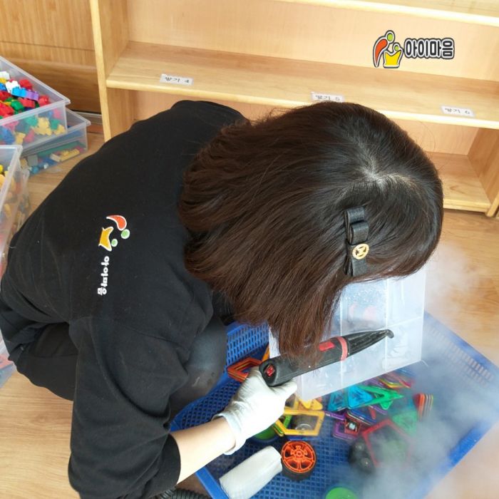 효덕초병설유치원의 책걸상,교구장,교구재,장난감등을 스팀세척살균소독하였습니다.
