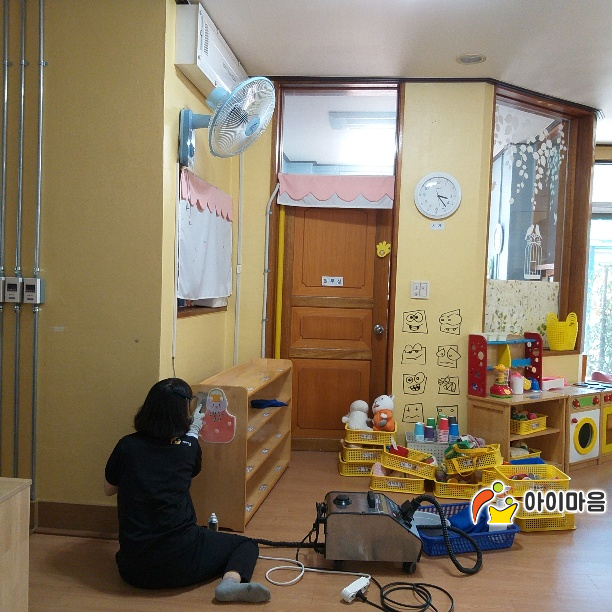 석천초 병설유치원 책걸상 교구장 교구재 등을 스팀세척살균소독 하였습니다.