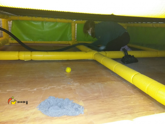 구석구석 많은 먼지와 특히 방방이 아래 먼지가 정말 많았습니다.