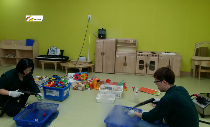 프라스틱 교구재와 카펫을 깔끔하게 스팀세척살균 소독 하였습니다.