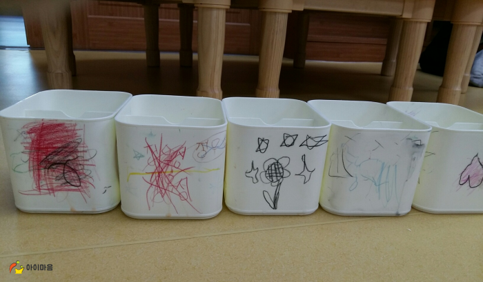 연필통마다 저렇게 낙서를 해놓았네요.