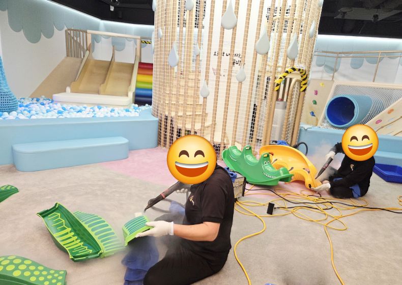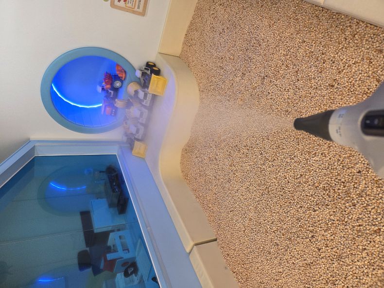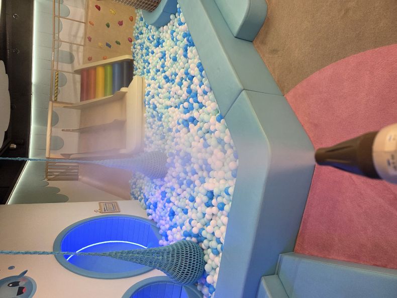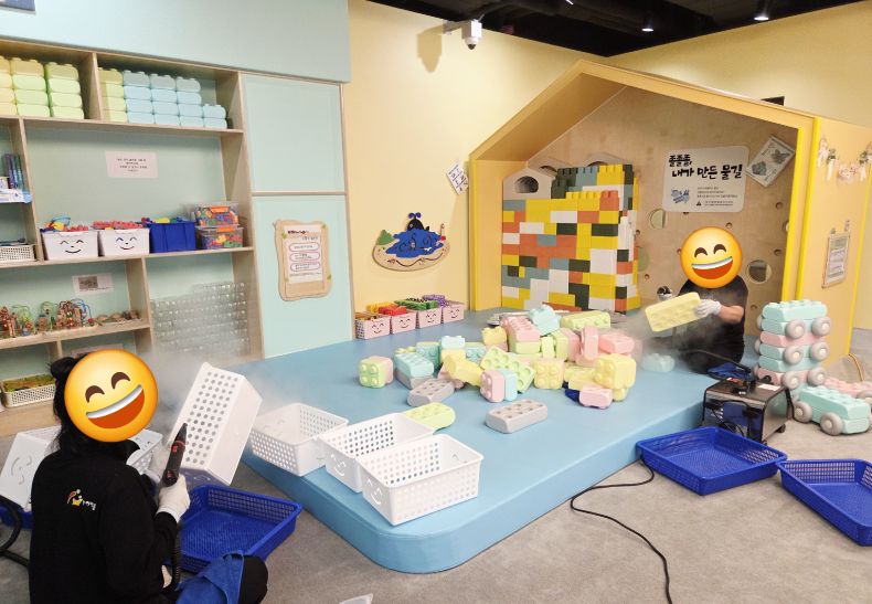 볼풀과 편백나무칩, 장난감등을 세척살균소독 하였습니다.