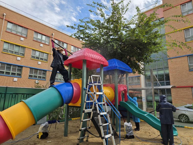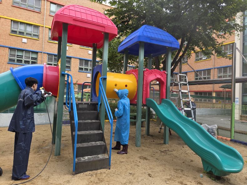 현암초 야외놀이터를 세척작업하였습니다.