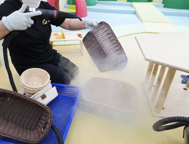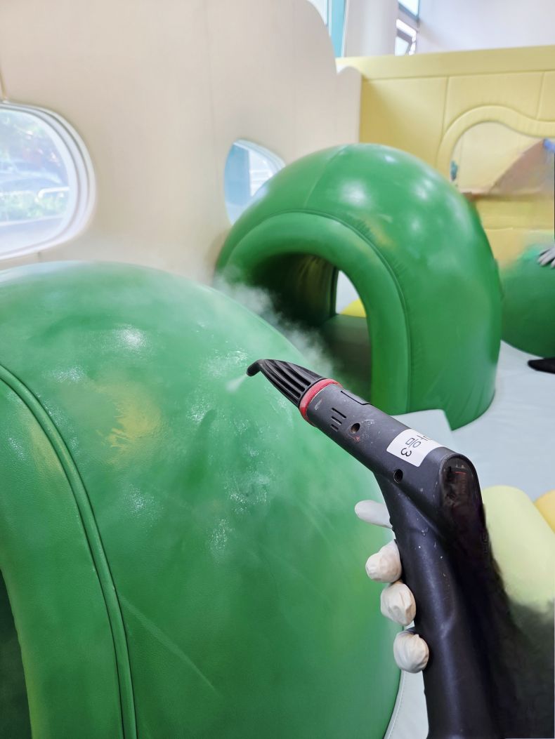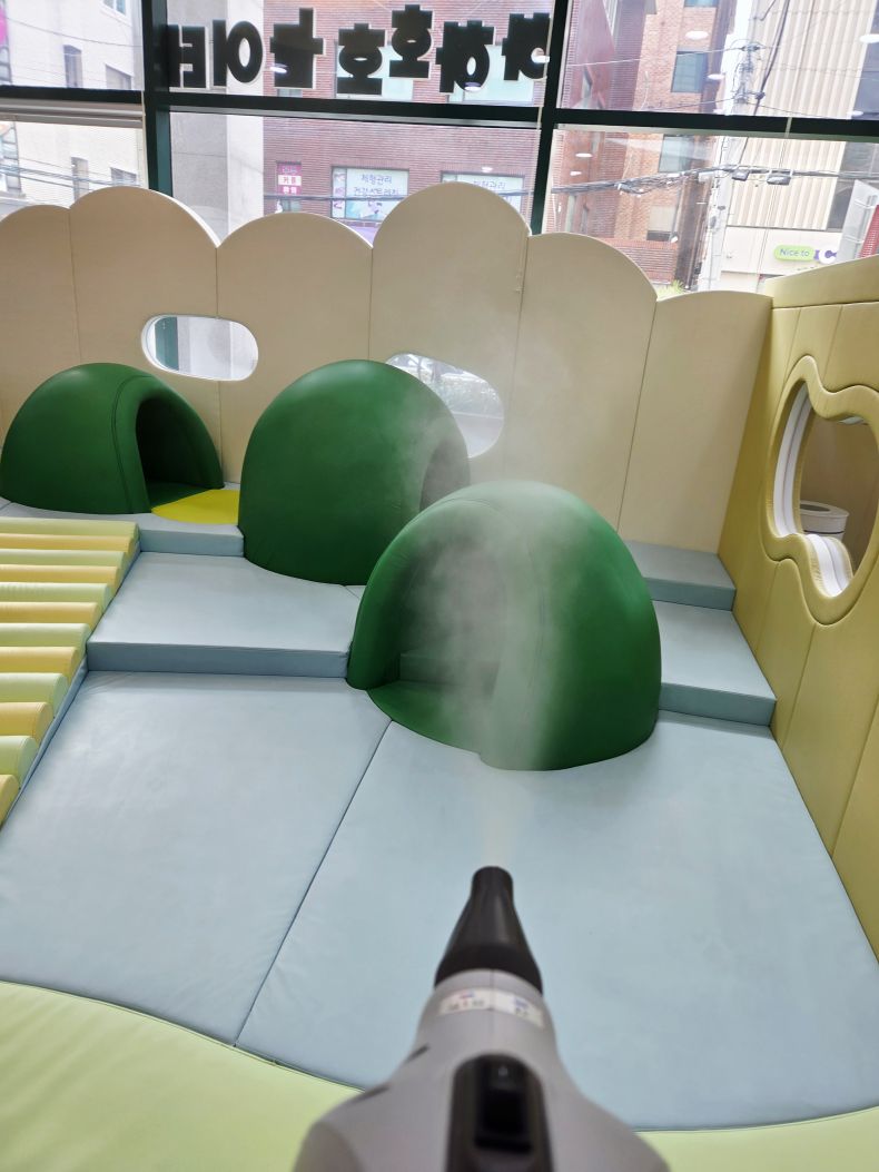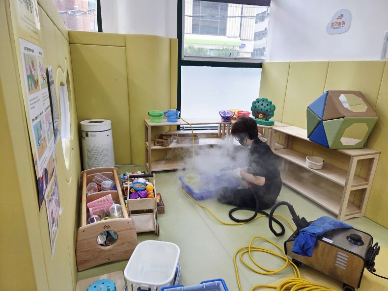 장난감과 시설물을 스팀세척살균소독 하였습니다.
