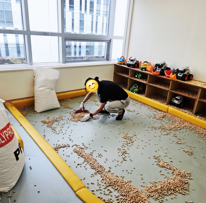 카카오 늘예솔어린이집 편백나무칩 놀이터 장난감과 편백나무칩을