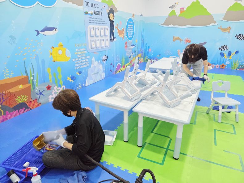 수원광교박물관 어린이체험실 편백나무칩과 시설물을