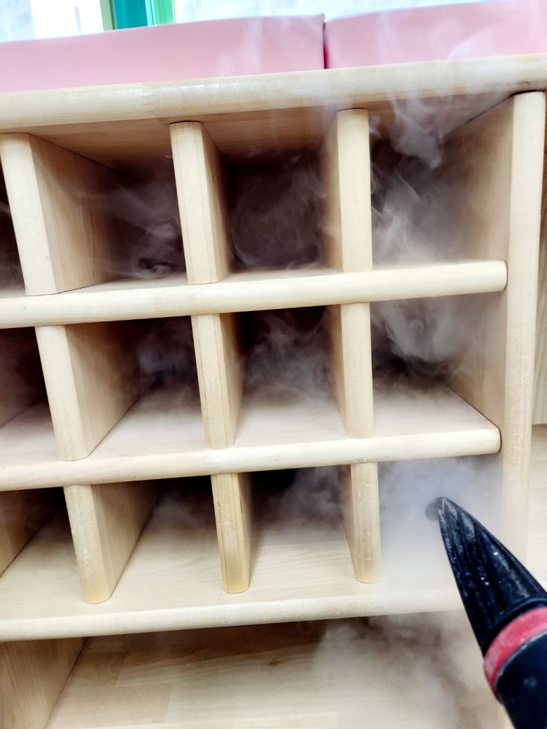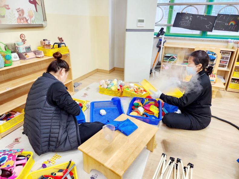 유희실의 정글짐놀이터와 장난감등을 스팀세척살균소독 하였습니다.