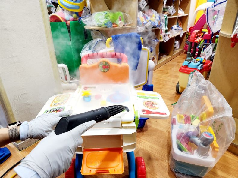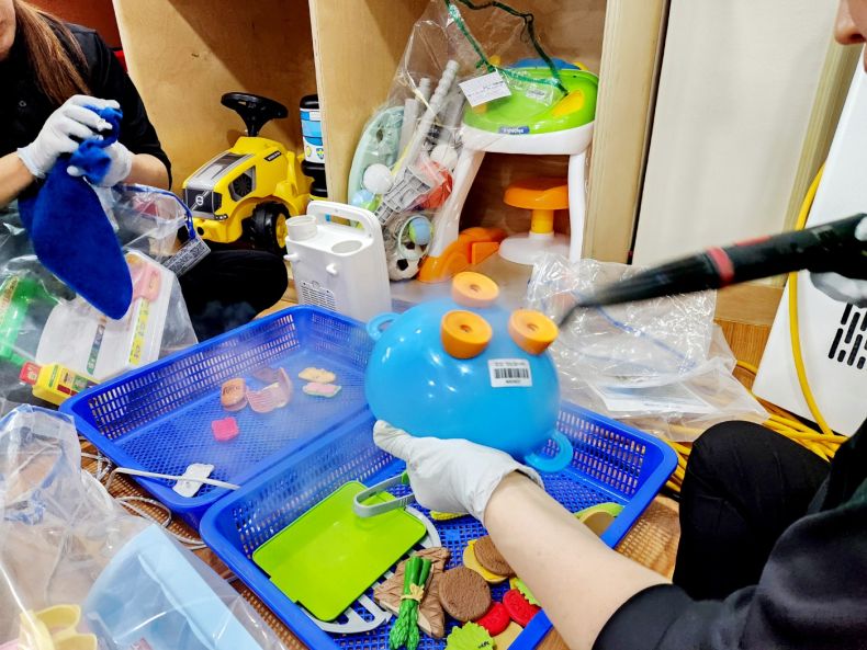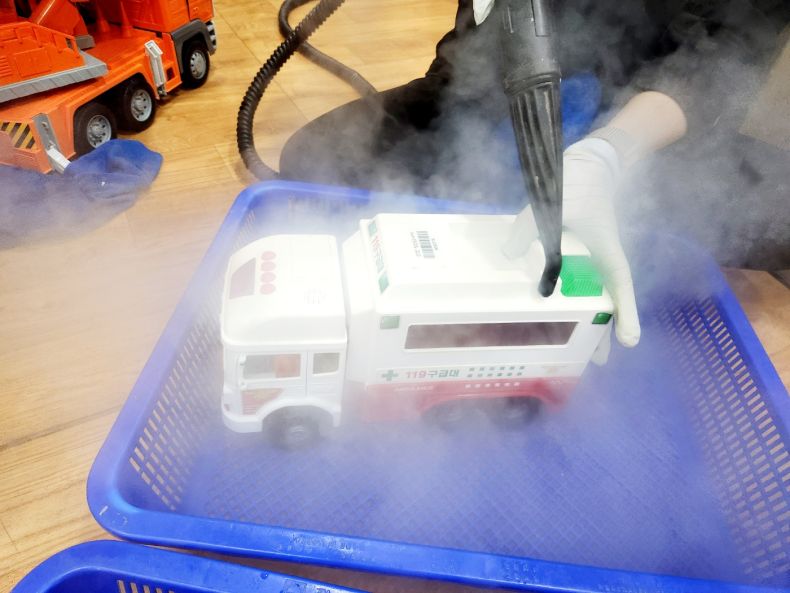 장난감을 이틀에 걸쳐 스팀세척살균소독 완료 하였습니다.