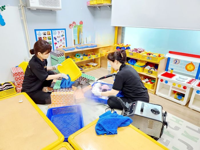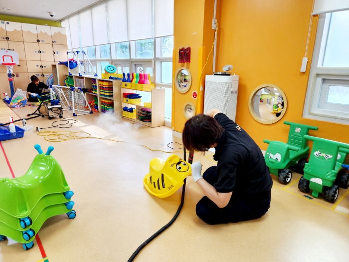 책걸상과 교구장, 교구재를 스팀세척살균소독 하였습니다.