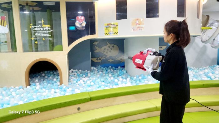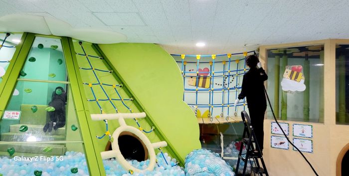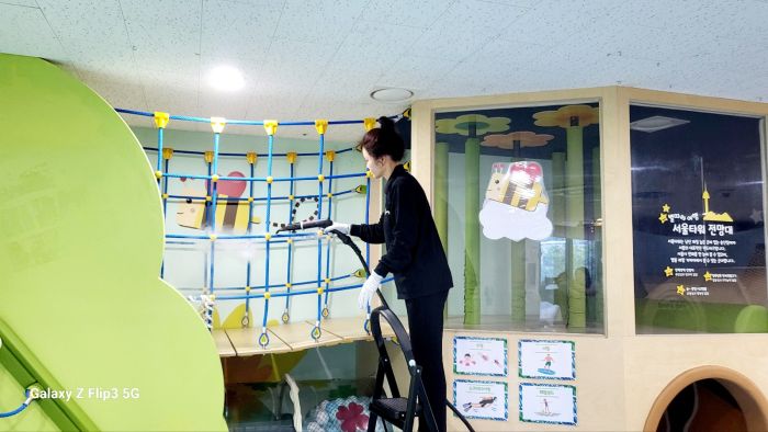 중구 하티붕붕 공공형놀이터 시설물 전체를 스팀세척살균소독 하였습니다.