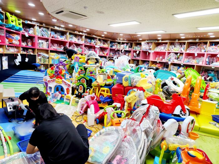 장난감을 스팀세척살균소독 하였습니다.